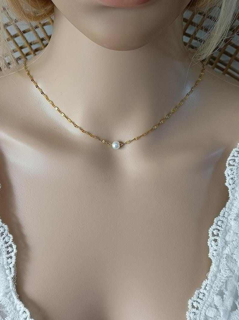 Plein de charme et d'élégance, ce collier de dos possède un design minimaliste dans l'air du temps . Son style épuré avec ses délicates perles feront de ce bijou l'un de vos accessoires favoris . Cette fine chaine scintillante ovale en acier inoxydable or ornée d’une jolie cascade de perles nacrées blanches. Dans la même collection je vous propose aussi les boucles d'oreilles et bracelet associés.