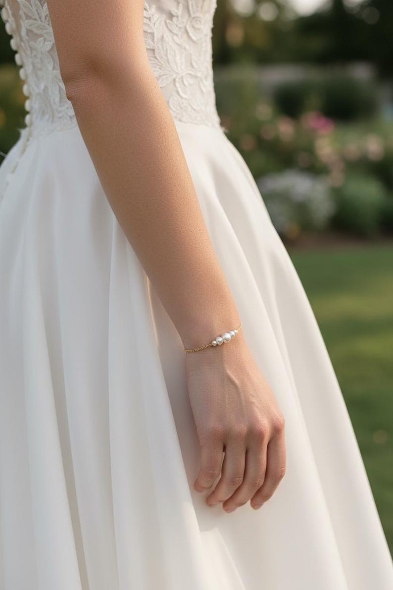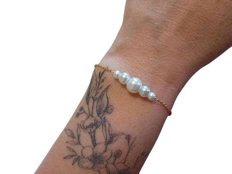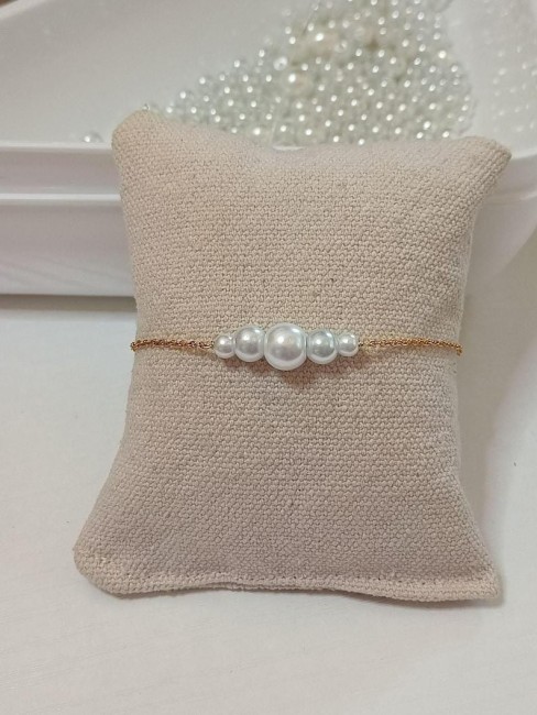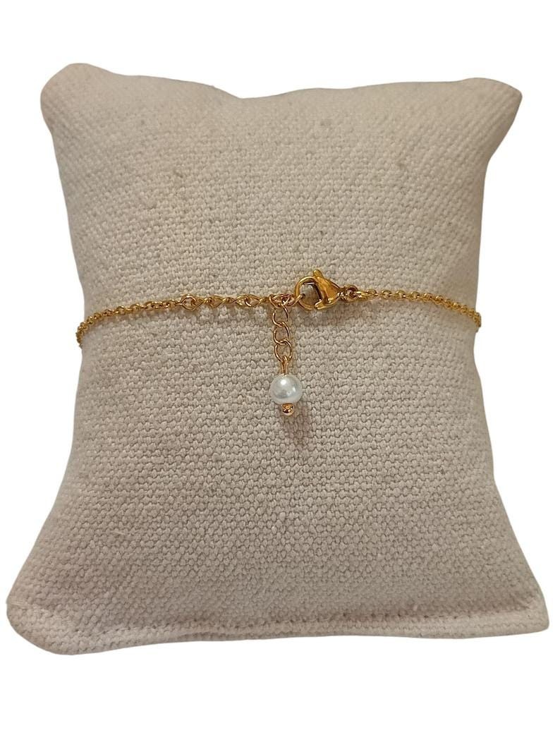 Joli Bracelet fin et délicat à la fois ce bijou est orné d'une fine chaîne en acier inoxydable agrémentée de plusieurs perles nacrées blanches. Bijou entièrement confectionné en acier inoxydable [ Qualité durable ]