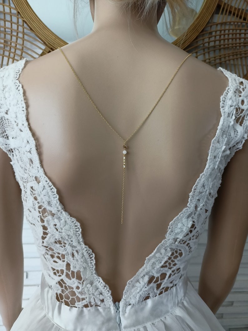 Affirmer votre style bohème avec ce joli collier de dos dans l air du temps qui sublimera à coup sûr un profond décolleté de dos pour toutes occasions.