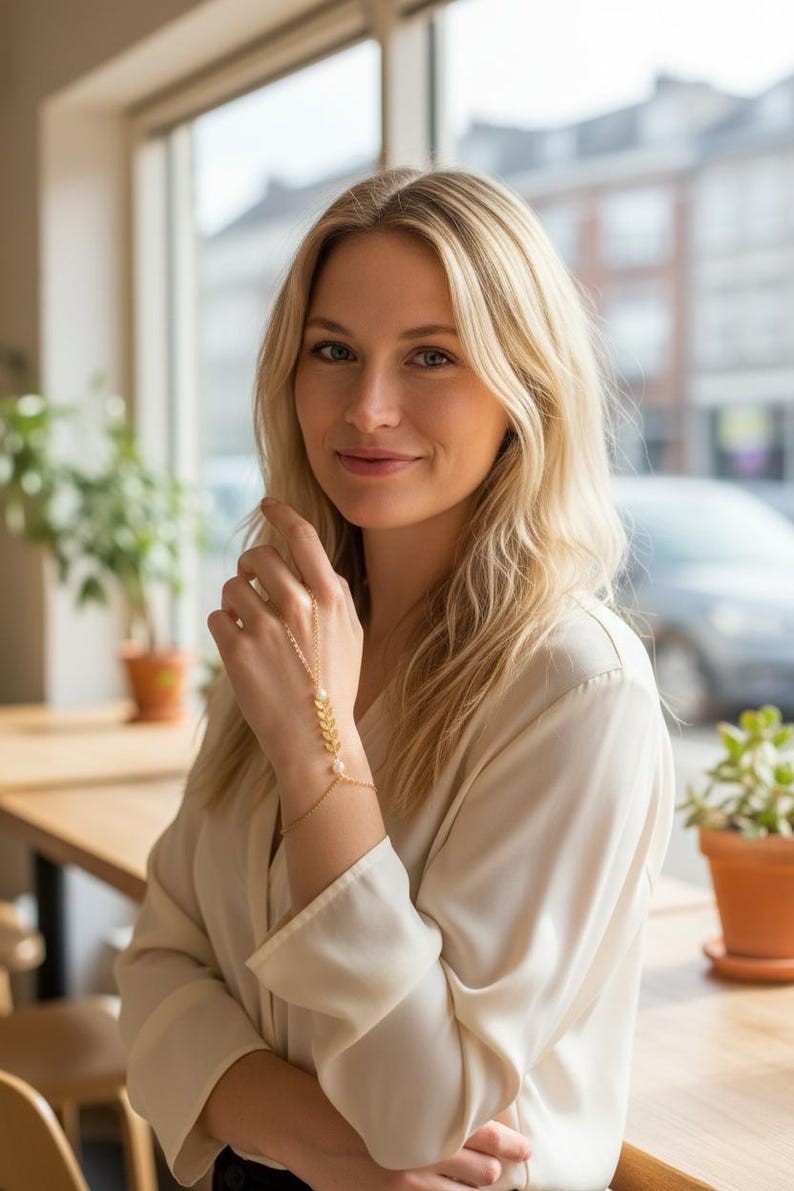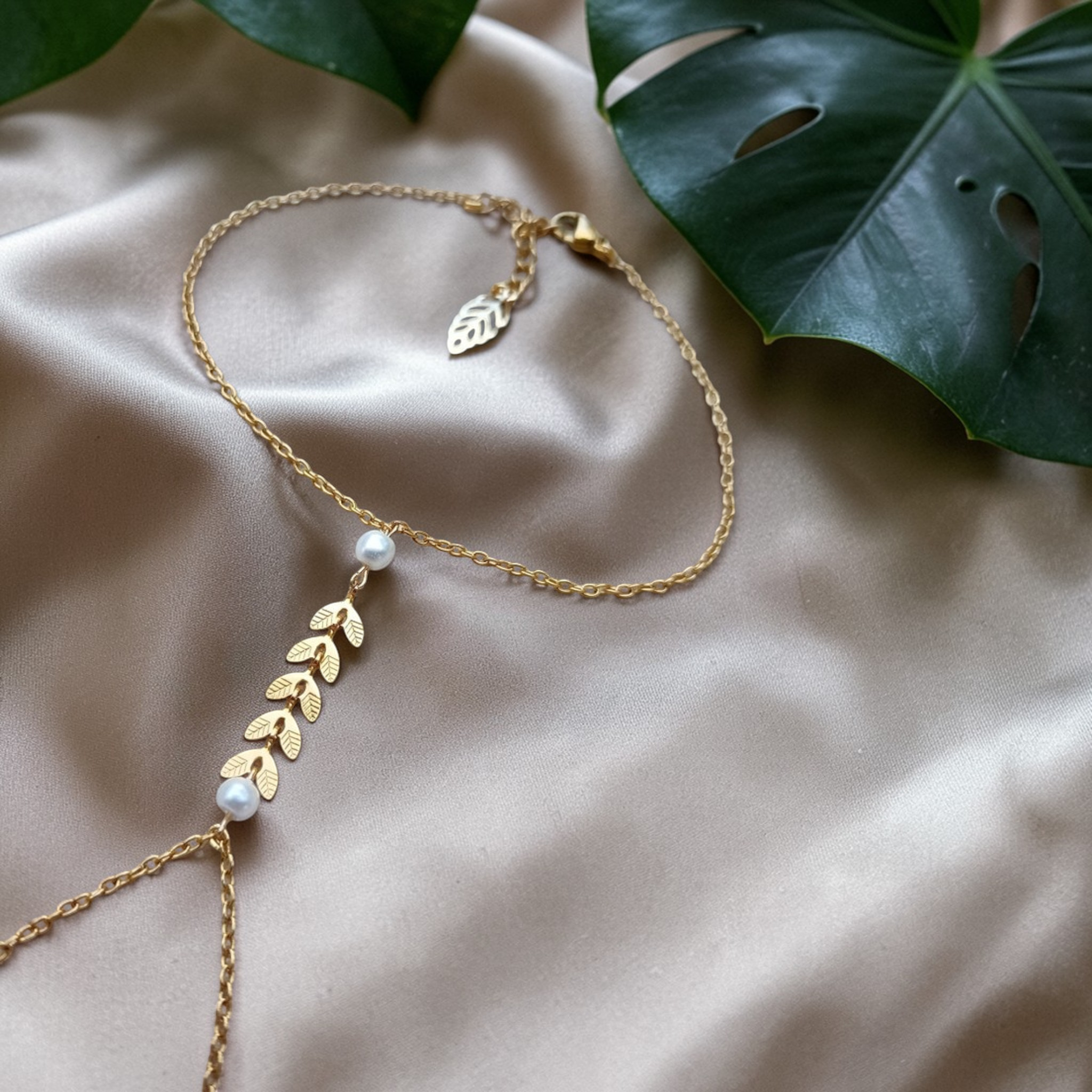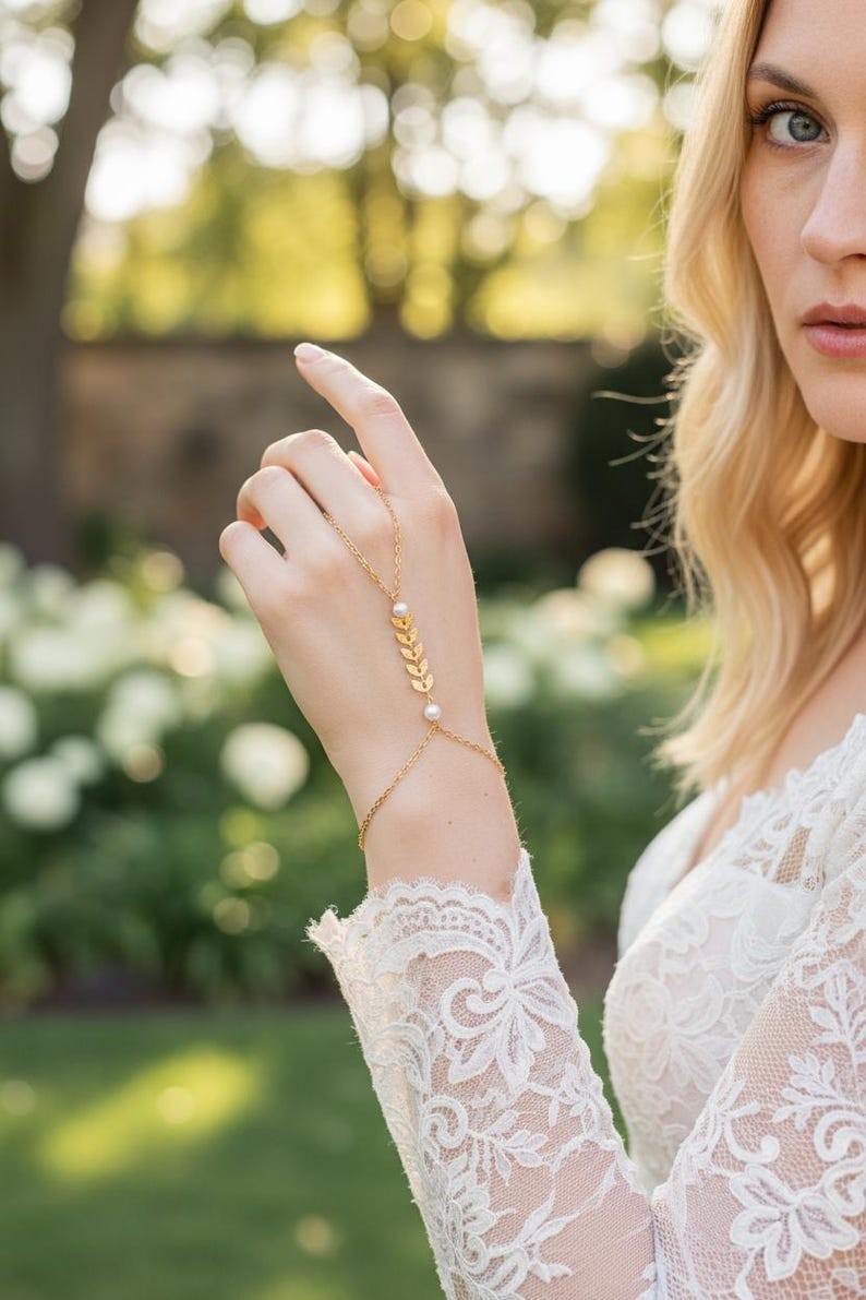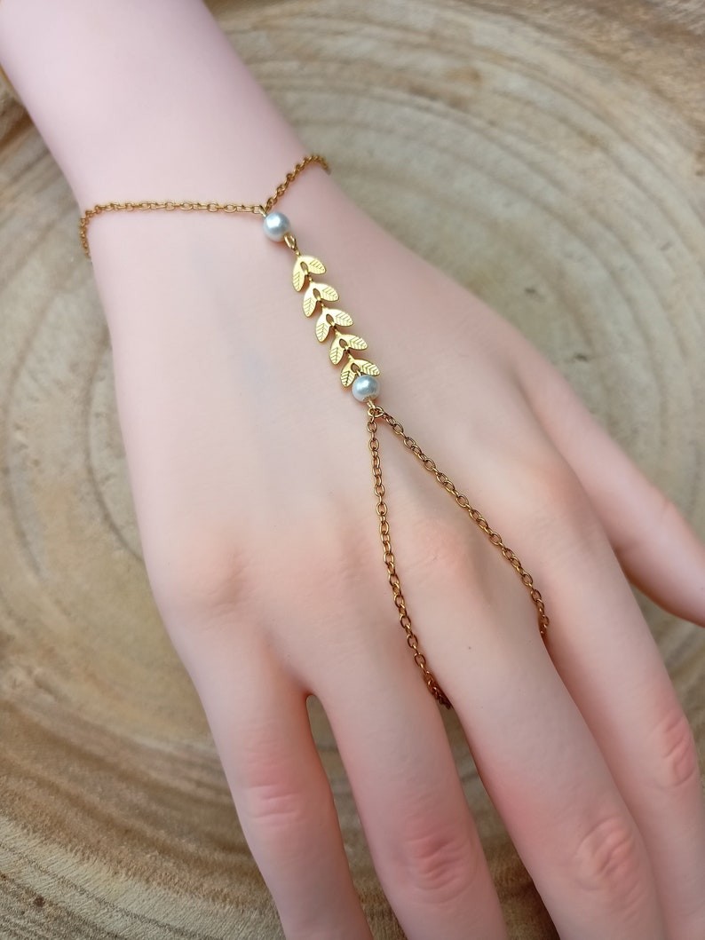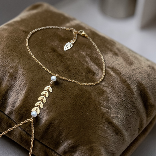 Ce bracelet est réalisé à partir d'une fine chaine classique ornée de plusieurs épis de blé finition perle nacrée blanche.