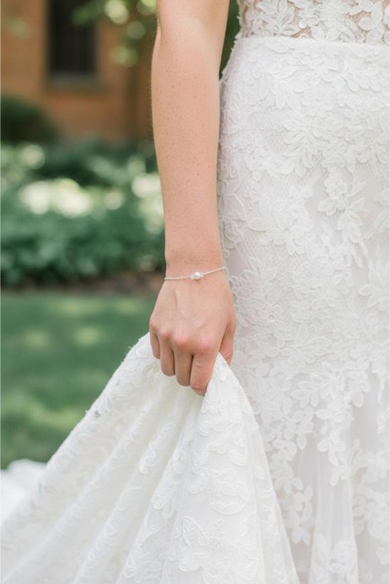 Bracelet de perles mariée - bracelet blanc - fine chaine - bracelet mariage chaîne fin - réglable France