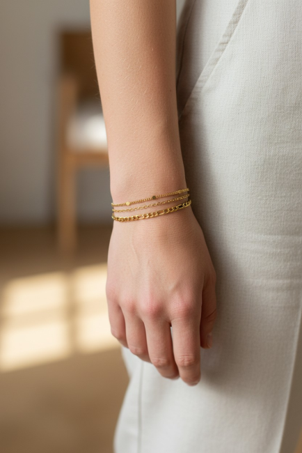 Bracelets multi-rangs dorés, Bracelet femme acier inoxydable Trio bracelets triple rangs bijou femme Bracelet chaine gourmette bijou fine chaine dorée fait main France