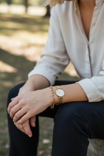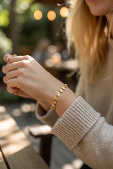 Bracelet pampilles en acier inoxydable doré or - bijou de poignet or pour femme - bijou inaltérable