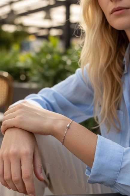 Bracelet mariage - bracelet mariée " Nélia " blanc argent massif - fine chaine - bracelet mariage chaîne fin - cristal réglable France