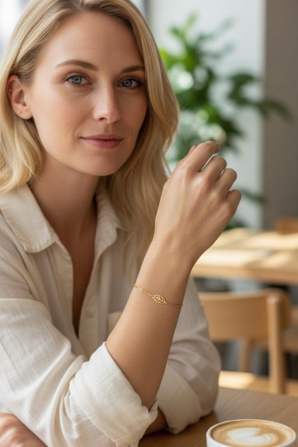 Bracelet feuille or bohème Alba acier - Bracelet mariage - bijou de poignet nature fait main France
