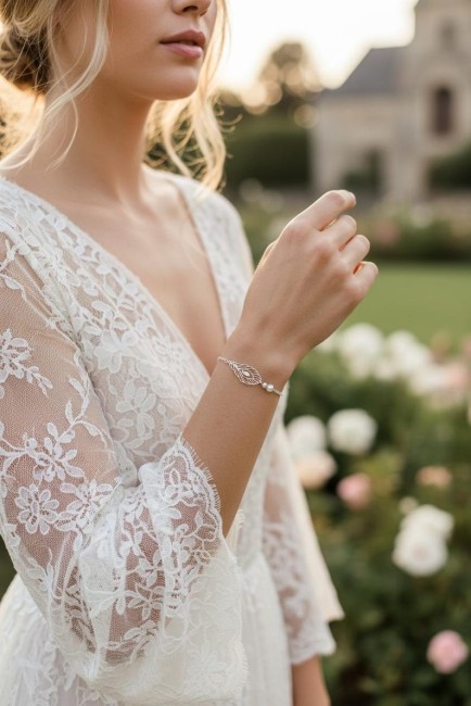 Bracelet fleur de mariée - bracelet fin de poignet - romantique et réglable France