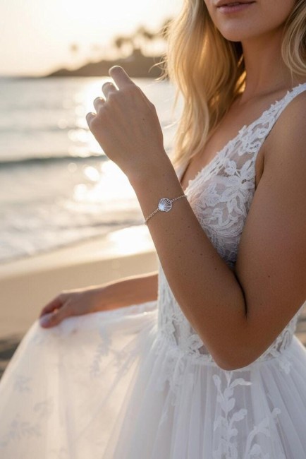 Bracelet mariage coquillage - bracelet mer argent acier inoxydable chaine - bracelet fin de poignet - Océanie réglable France
