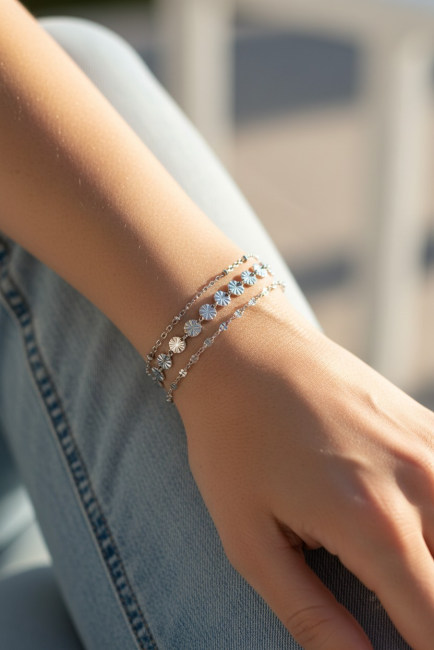Bracelets femme argent - Trio bracelets triple rangs en acier - bijou femme chaine gourmette - bijou chaine fine en argent fait main