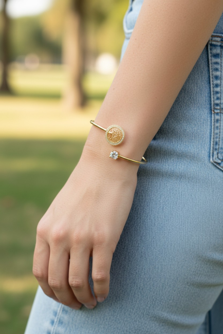 Bracelet arbre inoxydable ajustable réglable - bijou femme arbre de vie Spirituelle Bouddhisme - jonc doré méditation chakra cristal France