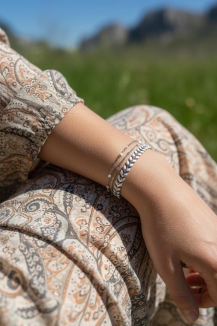 Bracelet argent en acier inoxydable épis de blé émaillé, bracelet multi-rangs argent, cadeau femme amie fait main email